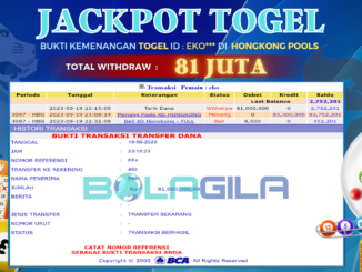 BOLAGILA JACKPOT TOGEL di HONGKONG POOLS Rp 81.000.000,- LUNAS MEMBER BOLAGILA MENERIMA PELUNASAN JACKPOT TOGEL di HONGKONG POOLS Rp 81.000.000,- LUNAS “BOLAGILA Situs Togel Online, […]
