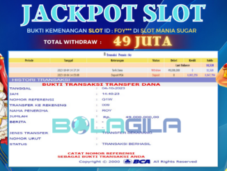 BOLAGILA JACKPOT SLOT DI SLOT MANIA SUGAR Rp 49.000.000,- LUNAS MEMBER BOLAGILA MENERIMA PELUNASAN KEMENANGAN JACKPOT SLOT DI SLOT MANIA SUGAR Rp 49.000.000,- LUNAS “BOLAGILA […]
