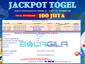 BOLAGILA JACKPOT TOGEL DI SYDNEY 4D Rp 100.000.000,- LUNAS