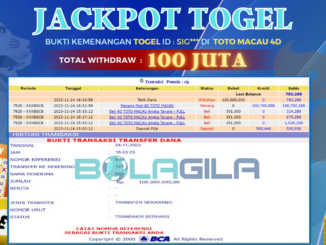 BOLAGILA JACKPOT TOGEL DI SYDNEY POOLS Rp 100.000.000,- LUNAS MEMBER BOLAGILA MENERIMA PELUNASAN KEMENANGAN BOLAGILA JACKPOT TOGEL DI SYDNEY POOLS Rp 100.000.000,- LUNAS “BOLAGILA Situs […]