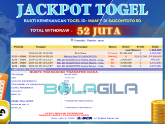 BOLAGILA JACKPOT TOGEL DI SAIGONTOTO 5D Rp 52.000.000,- LUNAS MEMBER BOLAGILA MENERIMA PELUNASAN KEMENANGAN JACKPOT TOGEL DI SAIGONTOTO 5D Rp 52.000.000,- LUNAS “BOLAGILA Situs Togel […]