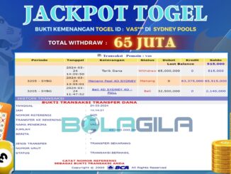 BOLAGILA JACKPOT TOGEL DI SYDNEY POOLS Rp 65.000.000,- LUNAS MEMBER BOLAGILA MENERIMA PELUNASAN KEMENANGAN JACKPOT TOGEL DI SYDNEY POOLS Rp 65.000.000,- LUNAS “BOLAGILA Situs Togel […]