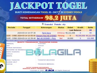 BOLAGILA JACKPOT TOGEL DI SYDNEY POOLS Rp 98,200.000,- LUNAS MEMBER BOLAGILA MENERIMA PELUNASAN KEMENANGAN JACKPOT TOGEL DI SYDNEY POOLS Rp 98,200.000,- LUNAS “BOLAGILA Situs Togel […]