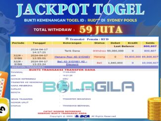 BOLAGILA JACKPOT TOGEL DI SYDNEY POOLS Rp 54.000.000,- LUNAS MEMBER BOLAGILA MENERIMA PELUNASAN KEMENANGAN JACKPOT TOGEL DI SYDNEY POOLS Rp 54.000.000,- LUNAS “BOLAGILA Situs Togel […]