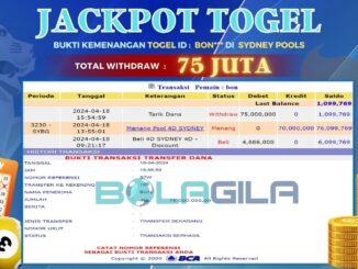 BOLAGILA JACKPOT TOGEL DI SYDNEY POOLS Rp 75.000.000,- LUNAS MEMBER BOLAGILA MENERIMA PELUNASAN KEMENANGAN JACKPOT TOGEL DI SYDNEY POOLS Rp 75.000.000,- LUNAS “BOLAGILA Situs Togel […]