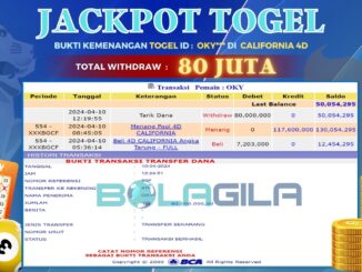 BOLAGILA JACKPOT TOGEL DI CALIFORNIA 4D Rp 80.000.000,- LUNAS MEMBER BOLAGILA JACKPOT TOGEL DI CALIFORNIA 4D Rp 80.000.000,- LUNAS “BOLAGILA Situs Togel Online, Casino Online, […]