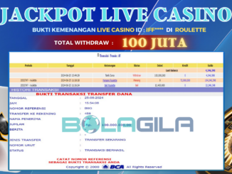 BOLAGILA JACKPOT LIVE CASINO di ROULETTE Rp 100.000.000,- LUNAS MEMBER BOLAGILA MENERIMA PELUNASAN KEMENANGAN LIVE CASINO di ROULETTE Rp 100.000.000,- LUNAS “BOLAGILA Situs Togel Online, […]