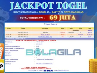 BOLAGILA JACKPOT TOGEL di TOTO MACAU 4D Rp 63.000.000,- LUNAS MEMBER BOLAGILA MENERIMA PELUNASAN KEMENANGAN JACKPOT TOGEL di TOTO MACAU 4D Rp 63.000.000,- LUNAS “BOLAGILA […]