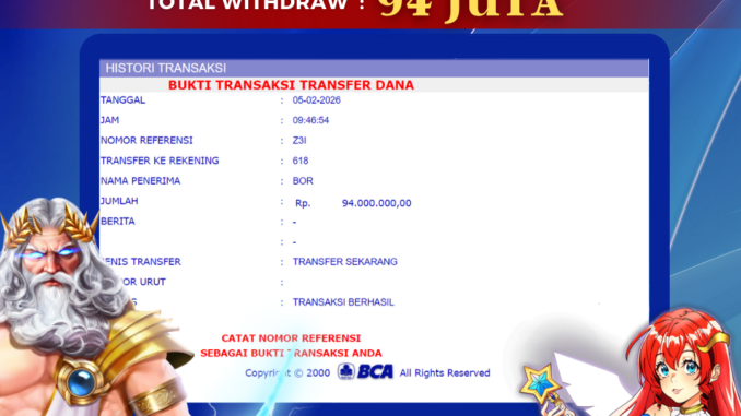 Bukti transfer yang dapat anda lihat adalah bukti SAH / VALID yang langsung di dapatkan melalui bukti transaksi dari Bank yang digunakan untuk pengiriman dana pada rekening pemilik user id. Terima kasih kami sampaikan kepada para pengguna setia BOLAGILA yang telah menggunakan situs kami, sebagai Bandar Terpercaya yang pastinya membayar semua kemenangan member hingga lunas. Apakah BOLAGILA PENIPU ? Reputasi “BOLAGILA TERPERCAYA” sudah sangat melekat.