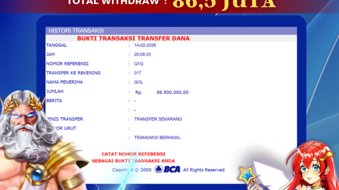 Bukti transfer yang dapat anda lihat adalah bukti SAH / VALID yang langsung di dapatkan melalui bukti transaksi dari Bank yang digunakan untuk pengiriman dana pada rekening pemilik user id. Terima kasih kami sampaikan kepada para pengguna setia BOLAGILA yang telah menggunakan situs kami, sebagai Bandar Terpercaya yang pastinya membayar semua kemenangan member hingga lunas. Apakah BOLAGILA PENIPU ? Reputasi “BOLAGILA TERPERCAYA” sudah sangat melekat.
