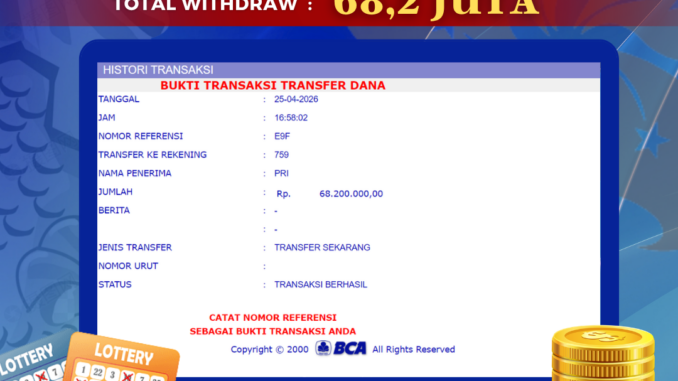Bukti transfer yang dapat anda lihat adalah bukti SAH / VALID yang langsung di dapatkan melalui bukti transaksi dari Bank yang digunakan untuk pengiriman dana pada rekening pemilik user id. Terima kasih kami sampaikan kepada para pengguna setia BOLAGILA yang telah menggunakan situs kami, sebagai Bandar Terpercaya yang pastinya membayar semua kemenangan member hingga lunas. Apakah BOLAGILA PENIPU ? Reputasi “BOLAGILA TERPERCAYA” sudah sangat melekat.