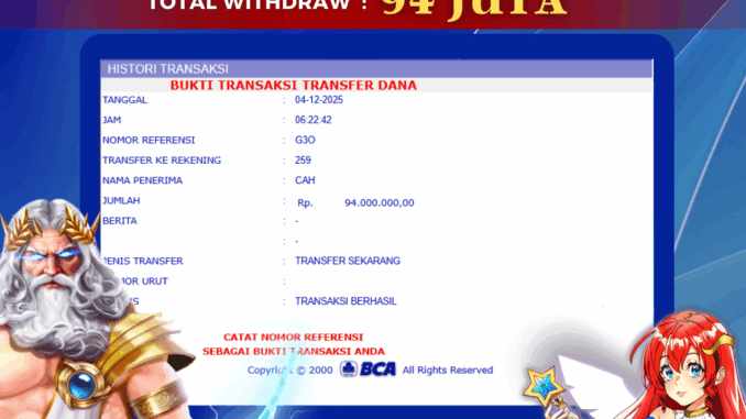 Bukti transfer yang dapat anda lihat adalah bukti SAH / VALID yang langsung di dapatkan melalui bukti transaksi dari Bank yang digunakan untuk pengiriman dana pada rekening pemilik user id. Terima kasih kami sampaikan kepada para pengguna setia BOLAGILA yang telah menggunakan situs kami, sebagai Bandar Terpercaya yang pastinya membayar semua kemenangan member hingga lunas. Apakah BOLAGILA PENIPU ? Reputasi “BOLAGILA TERPERCAYA” sudah sangat melekat.