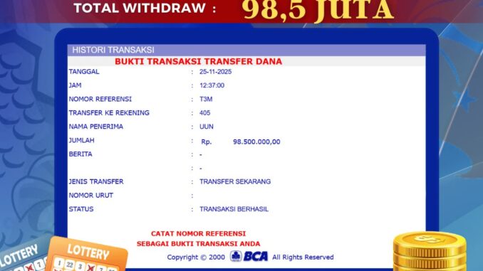 MEMBER BOLAGILA MENERIMA PELUNASAN KEMENANGAN JACKPOT TOGEL DI AMAZON LOTTO 3D Rp 98.500.000,- LUNAS