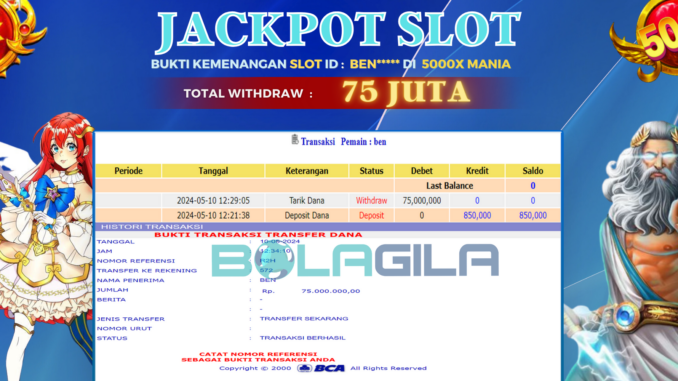 Bukti transfer yang dapat anda lihat adalah bukti SAH / VALID yang langsung di dapatkan melalui bukti transaksi dari Bank yang digunakan untuk pengiriman dana pada rekening pemilik user id. Terima kasih kami sampaikan kepada para pengguna setia BOLAGILA yang telah menggunakan situs kami, sebagai Bandar Terpercaya yang pastinya membayar semua kemenangan member hingga lunas. Apakah BOLAGILA PENIPU ? Reputasi “BOLAGILA TERPERCAYA” sudah sangat melekat.