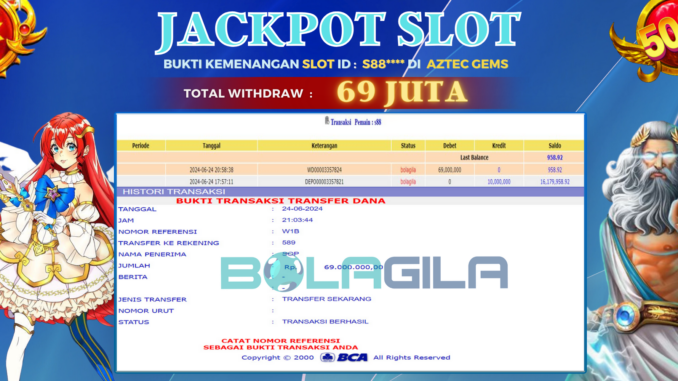 MEMBER BOLAGILA MENERIMA PELUNASAN KEMENANGAN SLOT di AZTEC GEMS Rp 69.000.000,- LUNAS