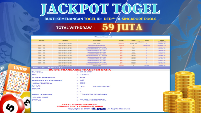 MEMBER BOLAGILA MENERIMA PELUNASAN KEMENANGAN JTOGEL di SINGAPORE POOLS Rp 59.000.000,- LUNAS