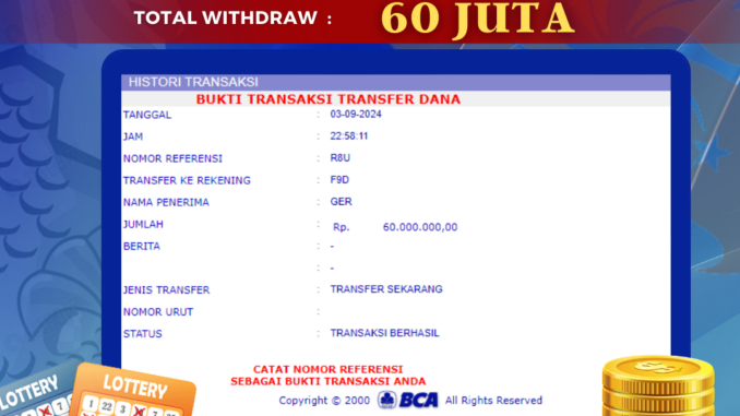 Bukti transfer yang dapat anda lihat adalah bukti SAH / VALID yang langsung di dapatkan melalui bukti transaksi dari Bank yang digunakan untuk pengiriman dana pada rekening pemilik user id. Terima kasih kami sampaikan kepada para pengguna setia BOLAGILA yang telah menggunakan situs kami, sebagai Bandar Terpercaya yang pastinya membayar semua kemenangan member hingga lunas. Apakah BOLAGILA PENIPU ? Reputasi “BOLAGILA TERPERCAYA” sudah sangat melekat.