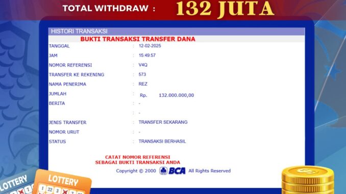 MEMBER BOLAGILA MENERIMA PELUNASAN JACKPOT TOGEL DI TOTO MACAU 4D Rp 132.000.000,- LUNAS