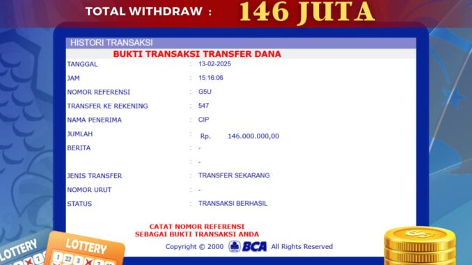 MEMBER BOLAGILA MENERIMA PELUNASAN JACKPOT TOGEL DI TOTO MACAU 4D Rp 146.000.000,- LUNAS
