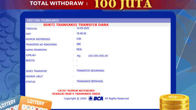 Bukti transfer yang dapat anda lihat adalah bukti SAH / VALID yang langsung di dapatkan melalui bukti transaksi dari Bank yang digunakan untuk pengiriman dana pada rekening pemilik user id. Terima kasih kami sampaikan kepada para pengguna setia BOLAGILA yang telah menggunakan situs kami, sebagai Bandar Terpercaya yang pastinya membayar semua kemenangan member hingga lunas. Apakah BOLAGILA PENIPU ? Reputasi “BOLAGILA TERPERCAYA” sudah sangat melekat.