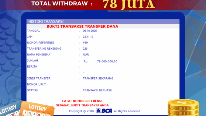 MEMBER BOLAGILA MENERIMA PELUNASAN KEMENANGAN JACKPOT TOGEL DI HONGKONG LOTTO Rp 78.000.000,- LUNAS