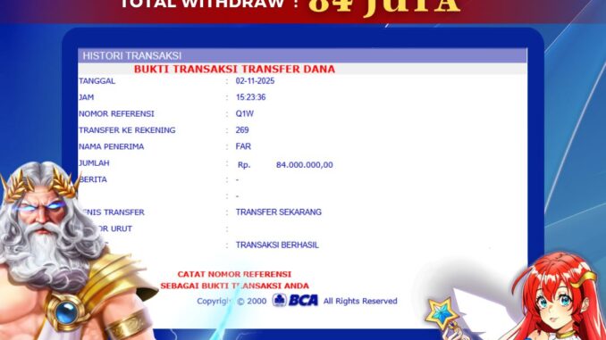BOLAGILA mengucapkan selamat kepada user id : FAR*** yang telah berhasil mendapatkan jackpot pada permainan SLOT DI SWEET BONANZA. Kemenangan sebesar Rp 84.000.000,-. telah dibayarkan LUNAS oleh pihak bolagila kepada pemilik user id setelah yang bersangkutan mengisi formulir withdraw. Proses pencairan dana berlangsung sangat cepat hanya dalam waktu 6-11 menit Sudah berada dalam rekening pemilik user id.